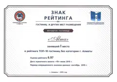 Almaty hospitality starts here! Almaty is an apple city. "Alma" means an apple in Kazakh, and we are located in the "Compote" region of Almaty. Our hotel "Alma" is located in Almaty downtown: Koshkunov 4A Street, at the corner of Luganski Street (back side of the Republic Palace). Within walking distance from the hotel are: